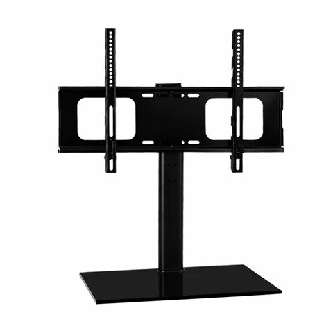 Comprising a strong tempered glass base and a solid metal frame, the integrated design simply looks stunning, especially with its sleek black finish and easily sits on any flat furniture with minimum fuss. The TV Stand design is also such that you can also run cables behind the TV neatly for a well-concealed look. Better still, TV screen can swivel up to 35 degree on either side for your preferred viewing spots. Not least, you can safely place a sound bar or mini component system on the tempered glass base to complete a great entertainment center.