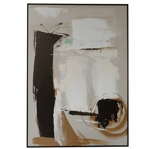 Beautiful use of colour blocking with heavy textured strokes of oil in white black, taupe, tan and with a hint of aqua makes this abstract a ideal statement.