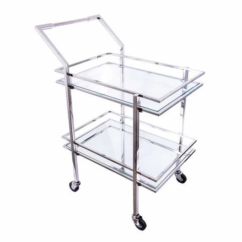 - Made from S.Steel, Clear Glass, Mirror, Mdf & Rubber Caster