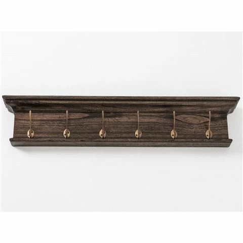 Add some flair with this cleverly designed coat rack. A small shelf has been incorporated into the crown molding, as a spot to display your decorative wares. Large coat hooks, with an antique brass finish, provide a home for coats, keys, or handbags.