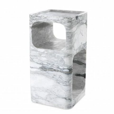 This exquisite furniture piece exudes Mid-Century Modern style and is comprised of white marble, making each piece unique.